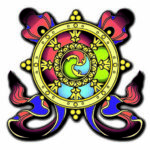 - The Wheel is the wheel of the Dharma. It represents the three turnings of the wheel of the Dharma by Shakyamuni Buddha and its symbolism is as explained earlier.